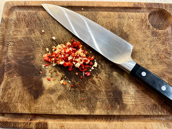 • 1–2 friske finthakkede chili eller 1 tsk chiliflager