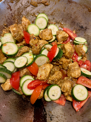 • 300–400 g kyllingefilet i tern (ca. 3 x 3 cm)
