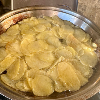Her på Casa Bella Vista laver vi dem om sommeren, når dagene er lange, og terrassen dufter af olivenolie, urter og aftensol. De sprøde, gyldne chips serveres ofte som en lille aperitivo, mens cikaderne begynder deres sang, og lyset blødgøres over vinmarkerne.