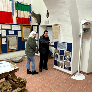 Derefter gik vi over i kirken, og ned af mange trapper, for at ende under kirken, hvor vi fik en rundvisning i det museum, præsten har været Primus motor for at lave i den forgangne sommer. Det rummer bl.a. et relikvie af San Rocco (Ripabottoni’s beskytter)